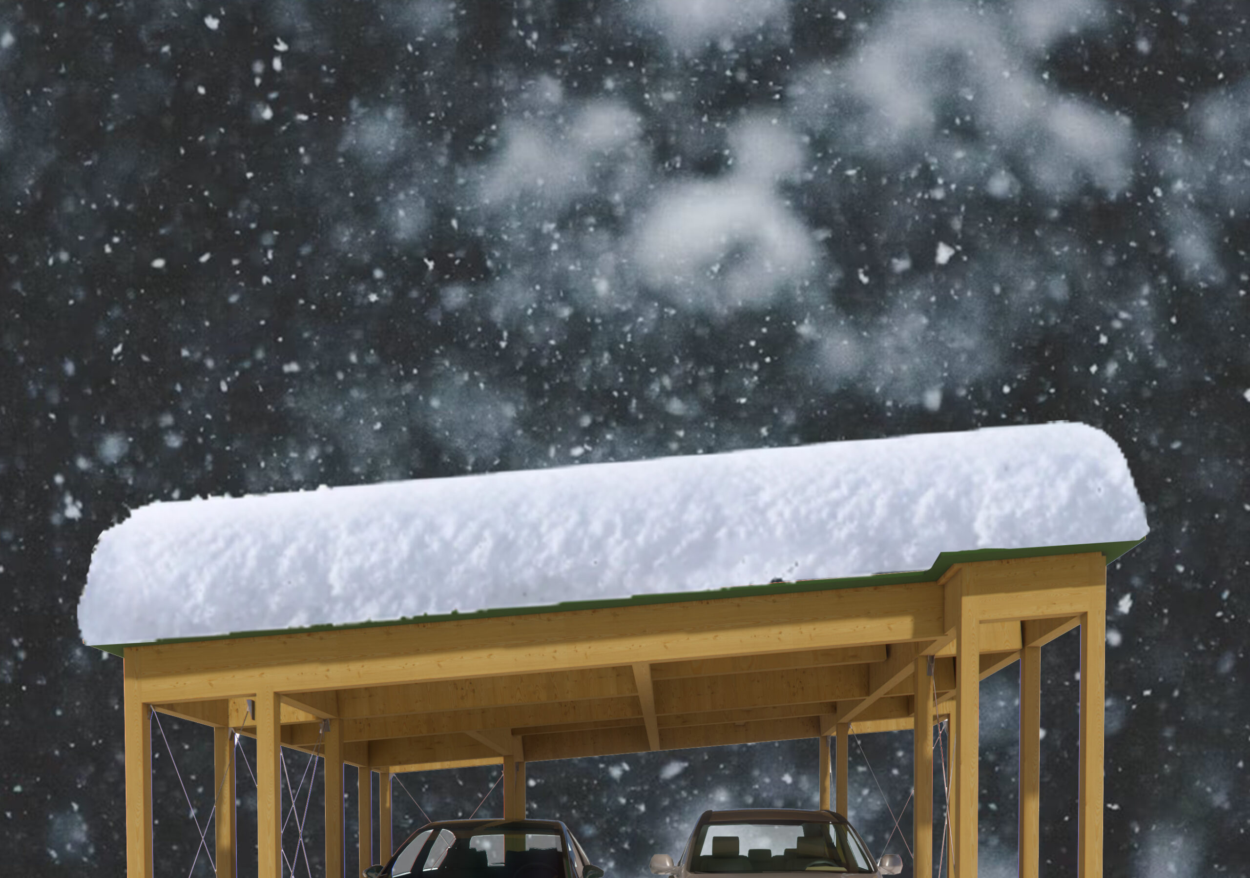 木製でありながら、強度の安定する集成材と接合部に金物を使用することで耐積雪150㎝を実現しました。雪の多い北陸地域でも利用できる強度が強みです。